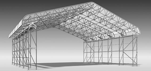 Mit den verschiedenen Software-Paketen LayPLAN CLASSIC und LayPLAN CAD können Gerüstkonstruktionen von einfachen, kleinen Fassadeneinrüstungen bis hin zu komplexen Industrierüstungen oder auch Schutz-Dächern und Tribünen geplant werden.