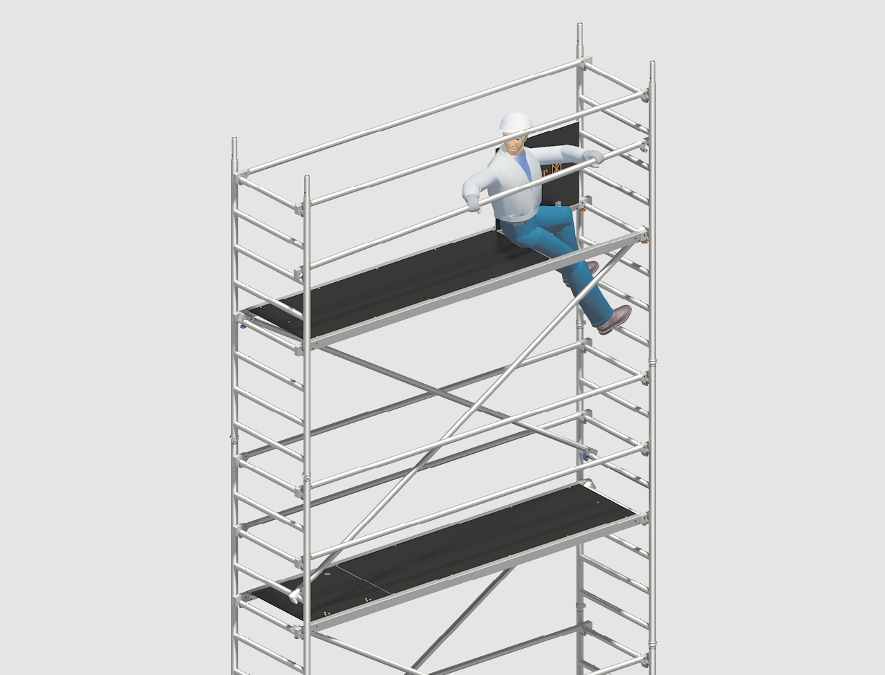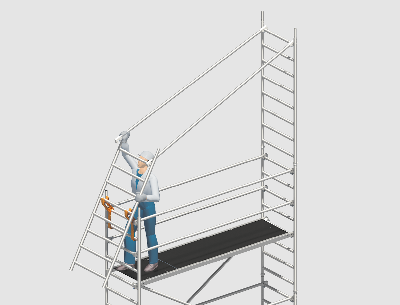 To comply in full with all requirements, Layher has now devised the Safety Structure P2. The Layher Safety Structure P2 represents the collective safety measure. If you already have a Layher rolling tower, you can upgrade it to the P2 design without any problem.