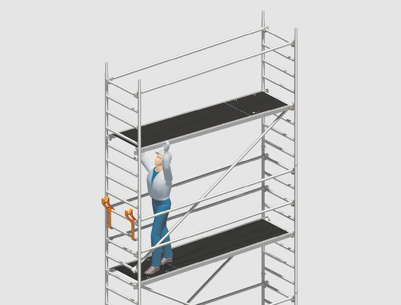 Easy passing of rolling tower parts or working materials from level to level.